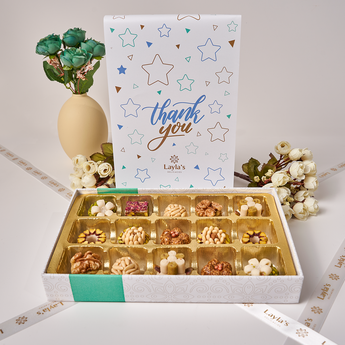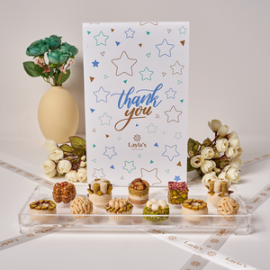 This gift box is full of decadent Mediterranean treats and will be the perfect way to say Thank You. Handcrafted with an artisan's passion in mind, this one-of-a-kind box contains an assortment of delicious pieces of art, with just the right combination of nutty flavors - not overly sweet but just enough to indulge. Guaranteed to put a smile on their face.