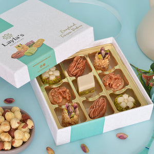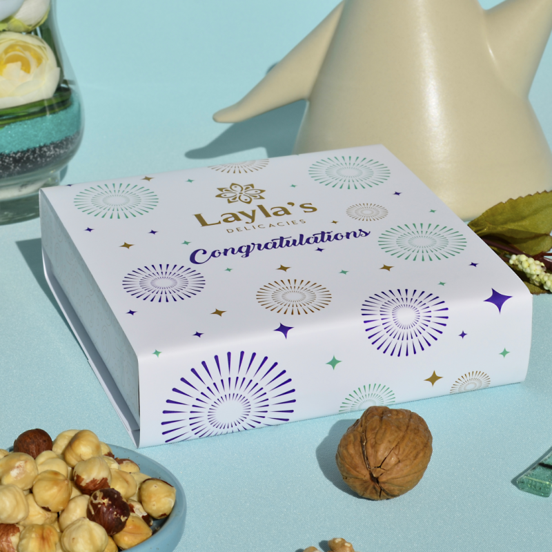 This gift box is full of decadent Mediterranean treats and will be the perfect way to say congratulations. Handcrafted with an artisan's passion in mind, this one-of-a-kind box contains an assortment of delicious pieces of art, with just the right combination of nutty flavors - not overly sweet but just enough to indulge. Guaranteed to put a smile on their face.