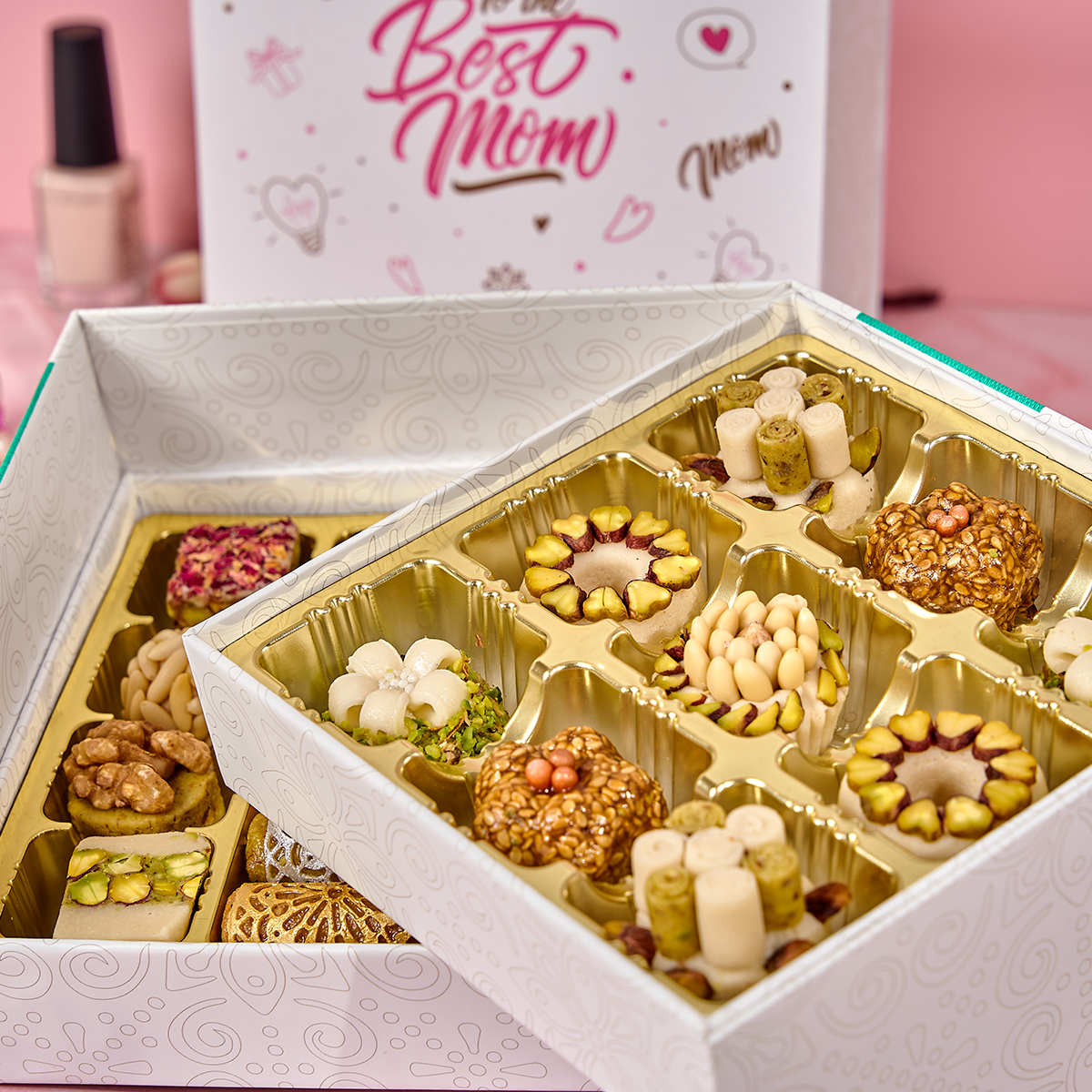 This gift box is full of decadent Mediterranean treats and will be the perfect way to show your appreciation. Handcrafted with an artisan's passion in mind, this one-of-a-kind box contains an assortment of delicious pieces of art, with just the right combination of nutty flavors - not overly sweet but just enough to indulge. Guaranteed to put a smile on their face.